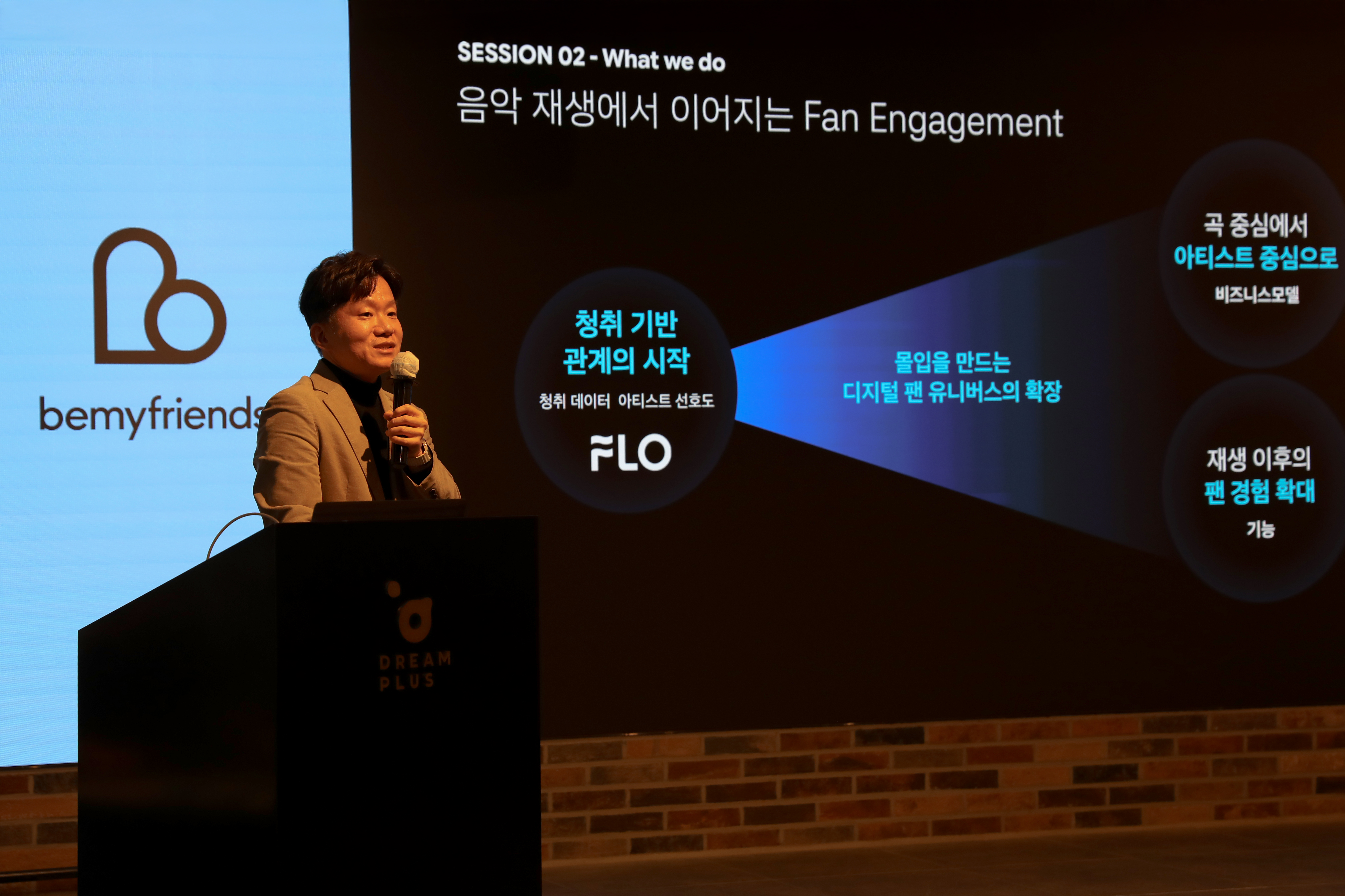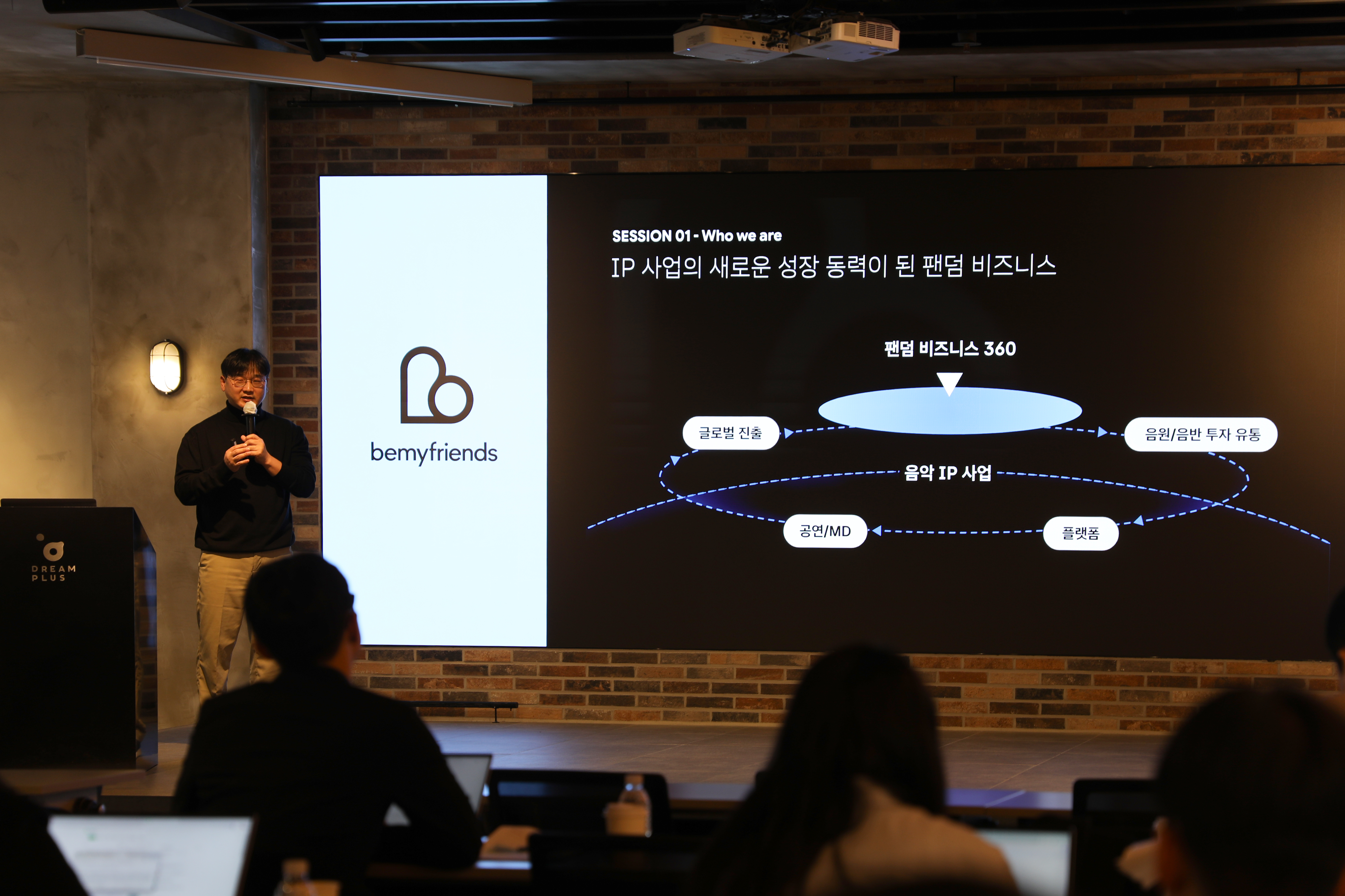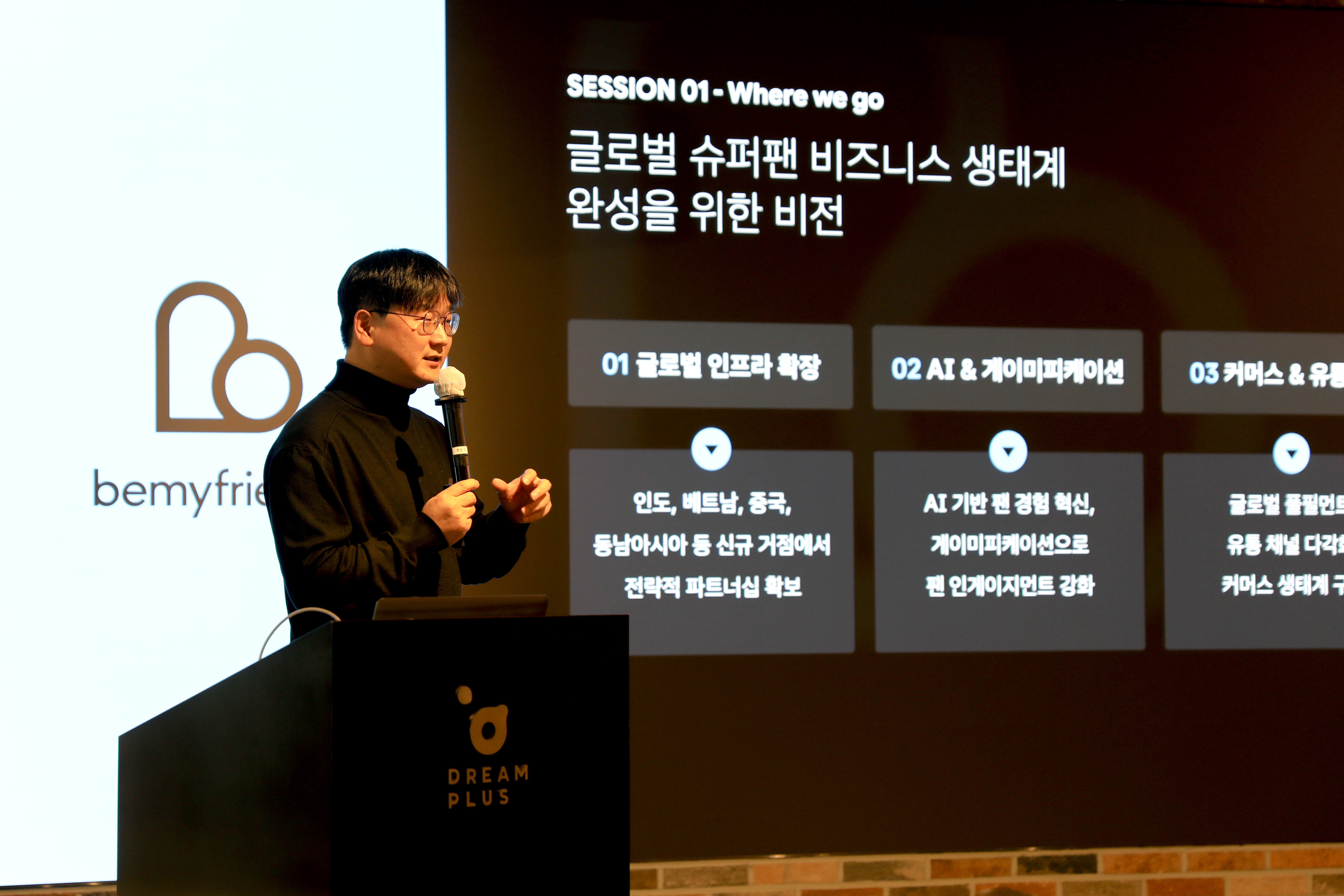 At the press conference, bemyfriends CEO Steve Seo presented under the theme "A New Chapter in Global Superfan Business." He introduced the "Fandom Business 360" model and global expansion strategy, emphasizing the uniqueness of bemyfriends.